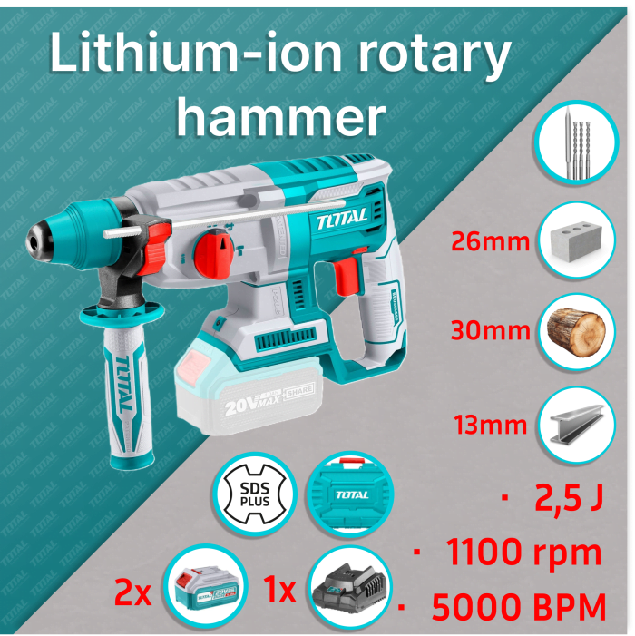 TRHLI202287 – Az akkumulátoros forgókalapács erős és megbízható eszköz, amely segíteni fog a legnehezebb feladatok megoldásában. A TRHLI202287-es típusú berendezés kefe nélküli motorral és SDS+ rendszerrel van felszerelve, amely magas energiahatékonyságot és hosszú élettartamot biztosít. Az üresjárati fordulatszám akár 1100 percenként, az ütésfrekvencia pedig akár 5000 ütés percenként lehet, ezáltal ez az eszköz gyors és precíz fúrást tesz lehetővé. A beépített munkalámpa segítséget nyújt az alacsony fényviszonyok mellett végzett munkában.